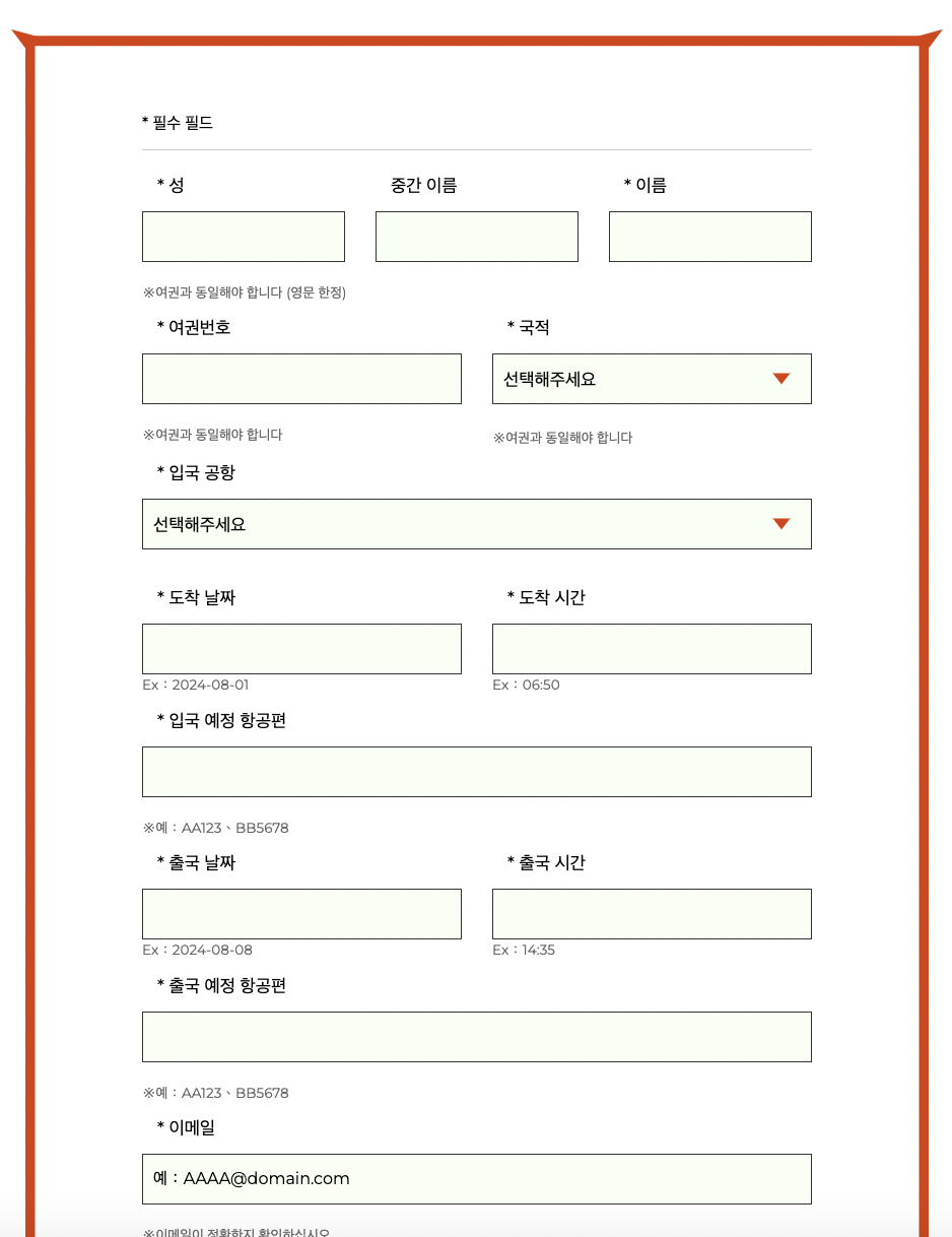 공식 홈페이지에 들어가 이름, 여권번호, 국적, 입국 공항, 입국 날짜&시간, 출국 날짜&시간, 이메일 등을 등록해 주시면 됩니다.