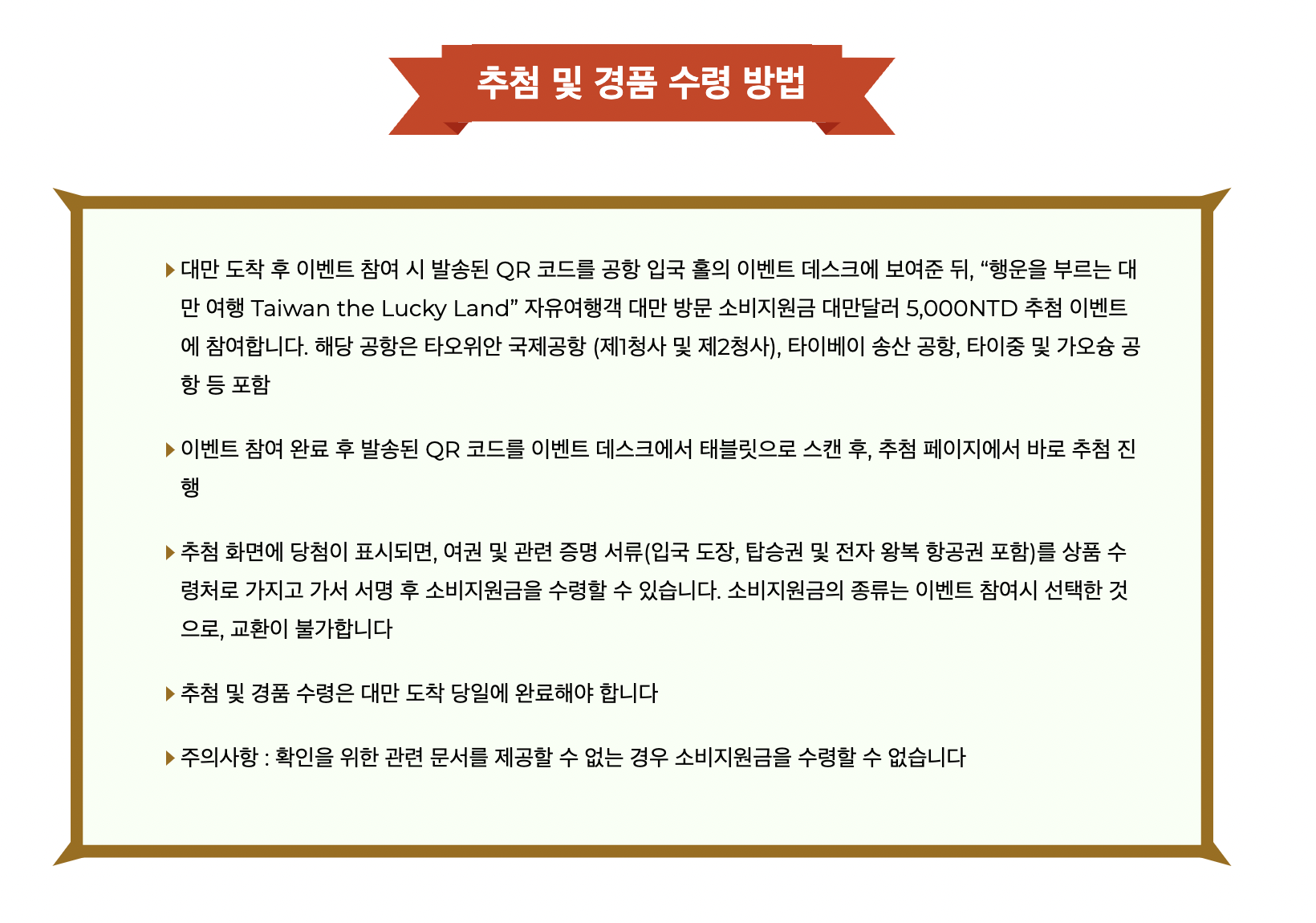 그리고 대만을 처음 방문하는 여행객에게는 딱! 한 번의 추첨 기회가 제공된다고 합니다ㅎㅎ