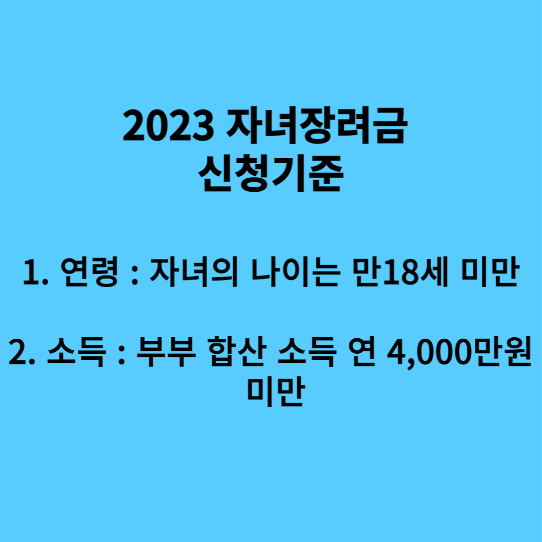 - 대한민국 국적자가 아닌 자, 다른 거주자의 부양자녀인 자, 배우자를 포함한 거주자가 전문직 사업을 할 경우에는 자녀장려금을 지원받을 수 없다는 것을 알아주세요:)