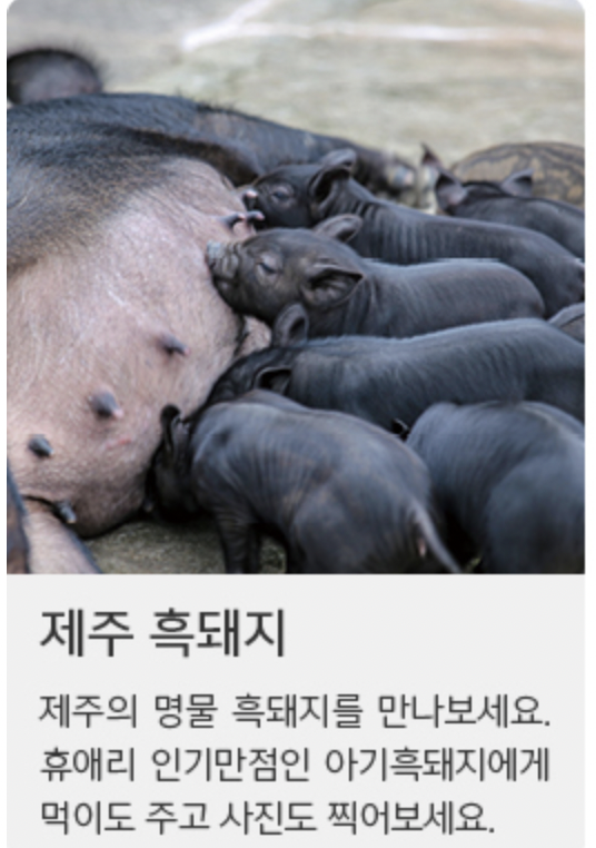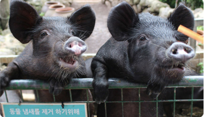 : 귀여운 아기 흑돼지와 가까이에서 만나보고, 먹이주기 체험도 해보세요! 동물 먹이주기 체험장에서 다양한 동물들을 만나볼 수 있습니다.