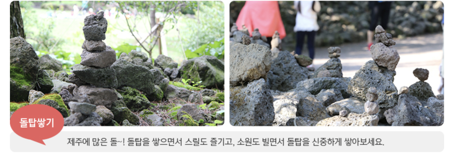 : 제주의 화산송이는 철분과 미네랄 성분이 많은 것으로 알려져 있습니다. 맨발로 걸을 수 있는 화산송이 올레길을 걸으며 여행에 지친 발의 피로도 풀고, 건강도 챙길 수 있습니다.