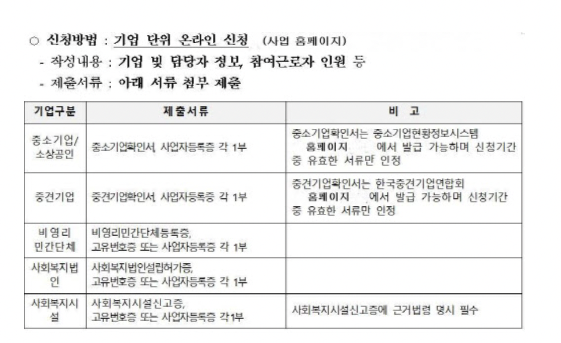 - 중소기업과 중견기업, 소상공인, 비영리 민간단체, 사회복지법인 및 시설 근로자